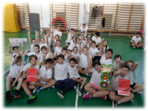 Először alaposan bemelegítettek a játékos, ügyességi váltóversenyhez. Majd két korcsoportban kezdődtek el a versenyek. A manó csoportban az 1. és 2. osztályosok, a szupermini korcsoportban a 3. és 4. osztály tanulói mérték össze ügyességüket. Az elődöntőben megtudtuk, hogy ki építi fel a legügyesebben a bójatornyát? Ki „röpteti” a leggyorsabban a tollaslabdát? Ki tud a legjobban teljesíteni párban? A sziámi futás és a „vak vezet világtalan” elnevezésű bizalom játék most is az egyik kedvenc feladat volt. A középdöntő feladataihoz a TE IS pályázat és a kölyökatlétika sporteszközeit is felhasználtuk. Volt floorball labda vezetése, rollerverseny, katonai terepgyakorlat. A döntőben a vízhordó verseny és a közkedvelt mocsárjárás karikákkal játék következett.