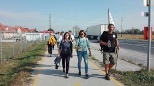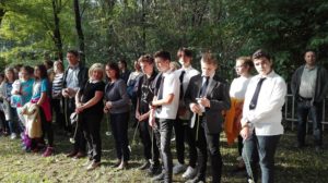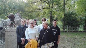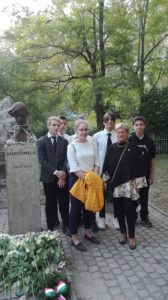 Tóth Péter Lóránt, akit csak Versvándorként ismernek, elhatározta, hogy bejárja Radnóti Miklós és 3500 munkaszolgálatos sorstársa végső útját a szerbiai Bortól a Győr melletti Abdáig. A kunszentmiklósi tanár augusztus 31-én indult Borból, és szeptember 24-én ért Győrbe, ahol verszarándoklata utolsó stációjához iskolánk nyolcadik osztályos tanulói (Bella Patrik, Cserepes Balázs, Póczik Áron, Szőke Zsófia, Varga Benedek, Varga József) és tanárai (Fekete Norbert, Nógrádi László, Juhászné Csortos Tünde, Sulyokné Kelemen Judit) is csatlakoztak, hogy a vándort együtt kísérjék Abdára, Radnóti és sorstársai tömegsírjához. Tóth Péter Lóránt zarándoklata során 42 településen vezetett át Szerbiában, Horvátországban és Magyarországon. Ezeken a településeken a holokauszt nemzeti tragédiája és Radnóti kálváriája képes volt összehozni, egységessé kovácsolni aí határon innen és túl élő magyarságot. A tragédia megismerése nem a halottak útjává, hanem a nemzetet összetartó közösségi, kultikus eseménnyé vált. Jól mutatja ezt, hogy az abdai töltésnél kialakított emlékparkban tartott megemlékezésen diákjaink együtt szavalták Radnóti Nem tudhatom című költeményét az ünnepségen megjelent helyi tanulókkal valamint a felvidéki és a magyarországi kulturális és egyházi szervezetek képviselőivel együtt. Az ünnepség végén diákjaink elhelyezték az emlékezés virágait, hogy így tisztelegjenek iskolánk névadója, a tragikus körülmények között elhunyt költőóriás és mártírtársai előtt.