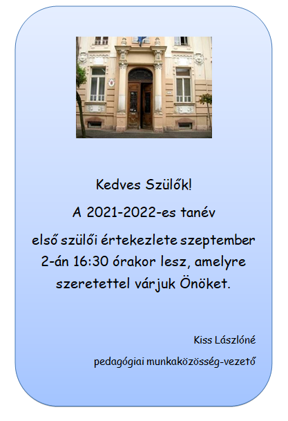 Intézményünk tanévnyitó műsorára szeptember 1-én 7:30-kor kerül sor a járványügyi szabályoknak megfelelően. Kérjük, hogy a tanulók ezen a napon ünneplőben jelenjenek meg.